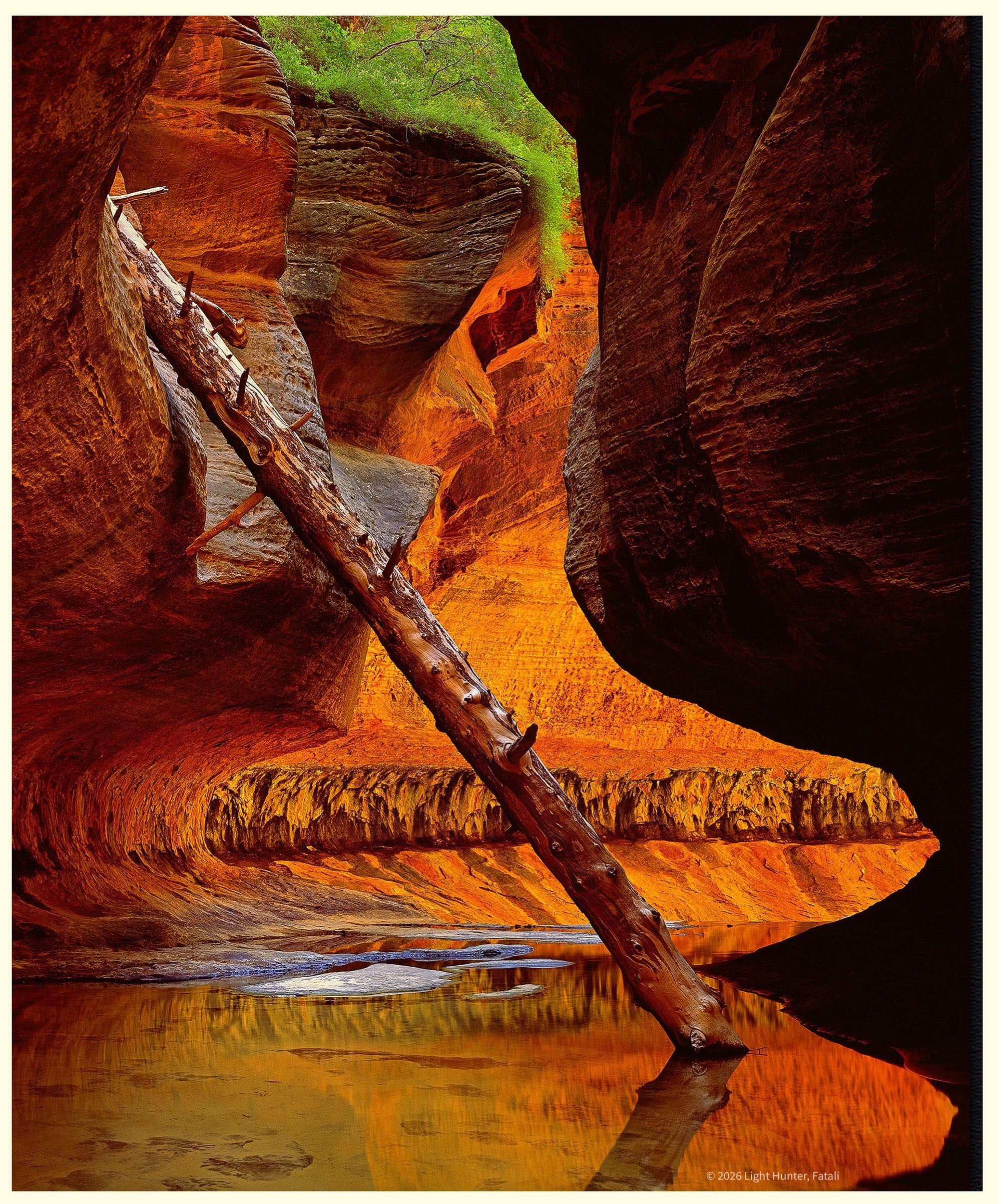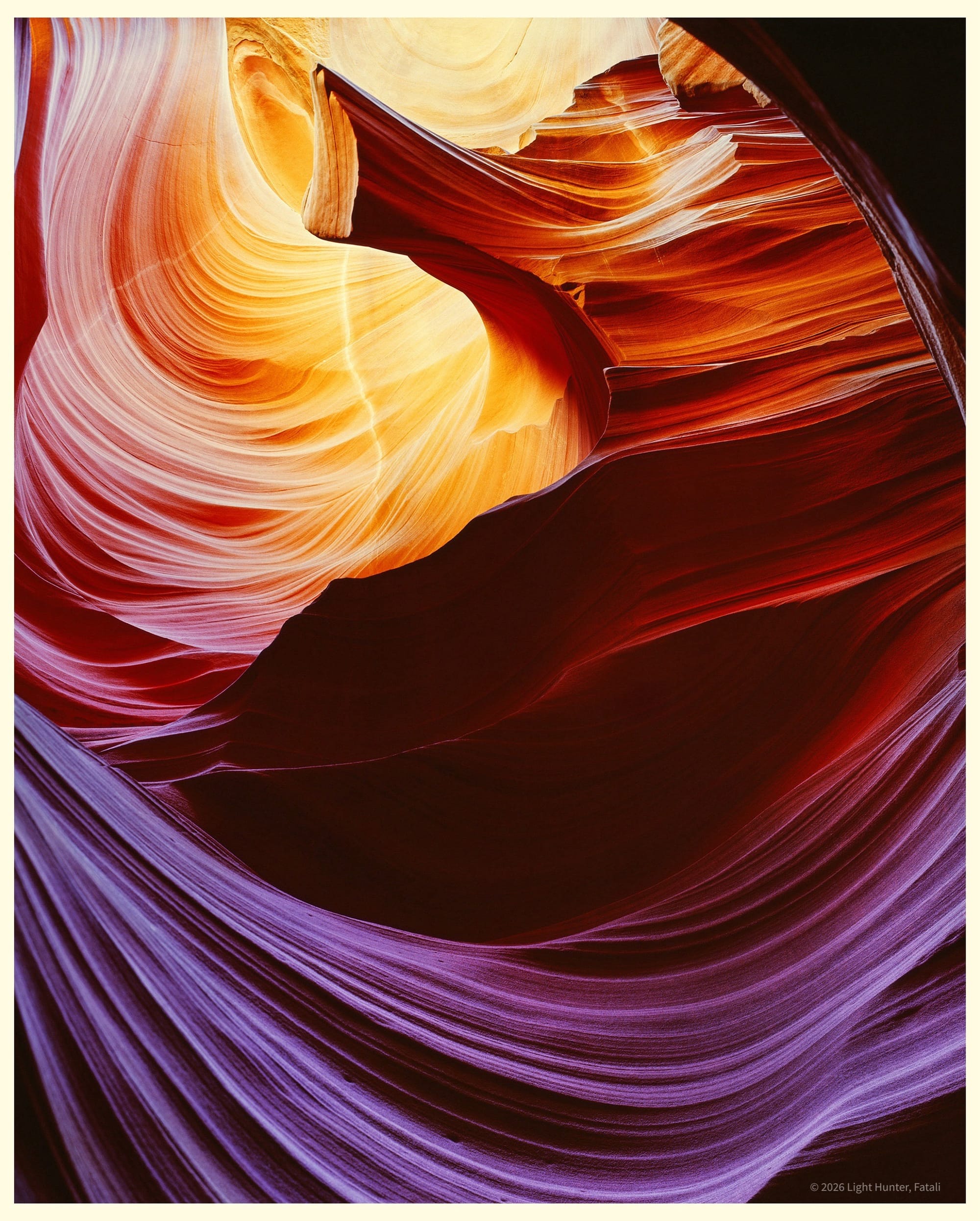 The American landscape photographer Michael Fatali, who performs under the name "Light Hunter" Fatali, was given this name in the 1980s by the Navajo people on account of his obsessive pursuit of light in the slot canyons of the American Southwest. His early portfolios and gallery exhibitions consisted of original Cibachrome prints — among them the "Mystery Gardens" portfolio presented in Page, Arizona, containing eight original Cibachrome photographs in a limited edition [11]. Auction listings explicitly catalogue his works as Cibachrome prints on Ilfochrome paper, underscoring the high collector status of these analogue originals [12]. Fatali himself has described how he literally lived in his Cibachrome darkroom for years before he could afford a normal apartment — a degree of dedication that perfectly mirrors the ascetic rigour of the process [13] [14].